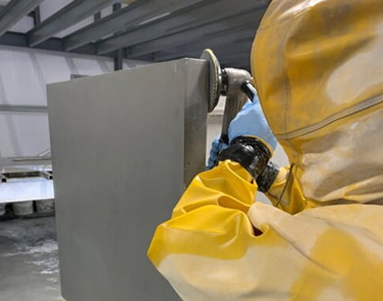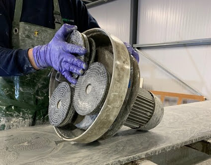 Our state of the art new polished concrete workshop facility in Cahir, Co Tipperary stands at approx. 700m². The facility is purpose built and climate controlled to ensure optimum conditions for producing high quality concrete, We have invested in 2 HEPA Dust Filtration systems, one for dust from wood, and the other concrete dust. Extraction arms extend throughout the workshop to make it a safe working environment. We have doubled our production capacity – so we now produce upwards of 30m² per week in our new space.