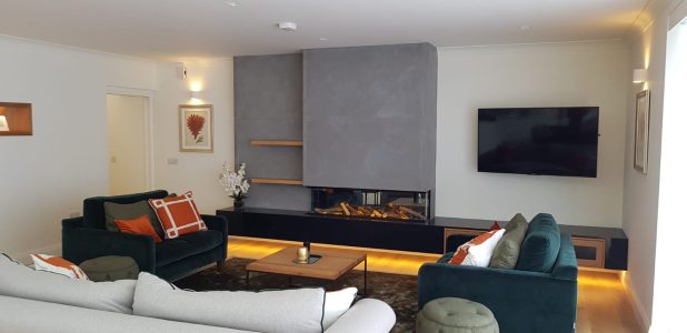Concrete Fire Plinth: A concrete fire plinth elevates the fireplace, creating a focal point and a sense of prominence within the room. The plinth can also be designed to match the overall aesthetic.